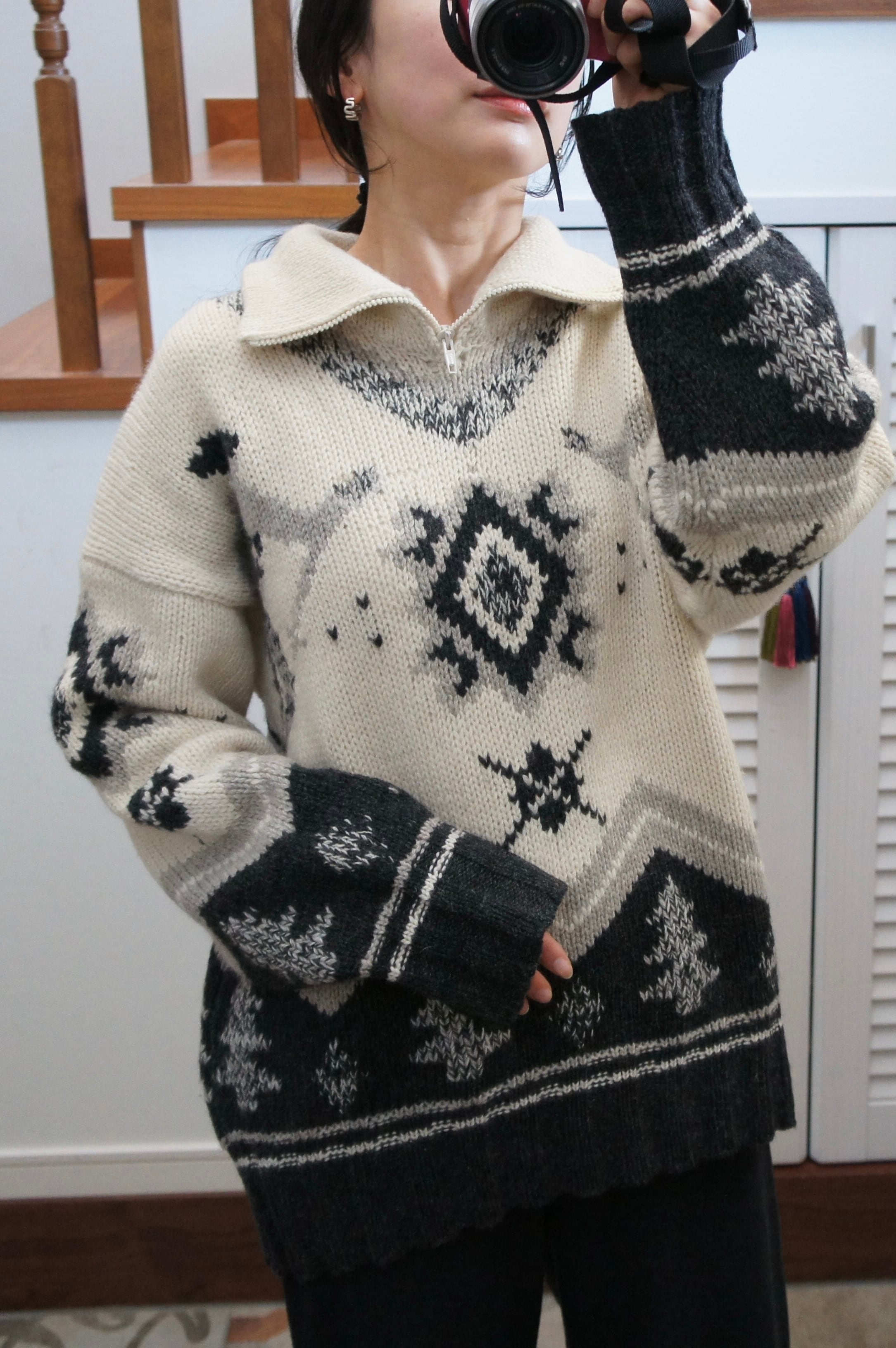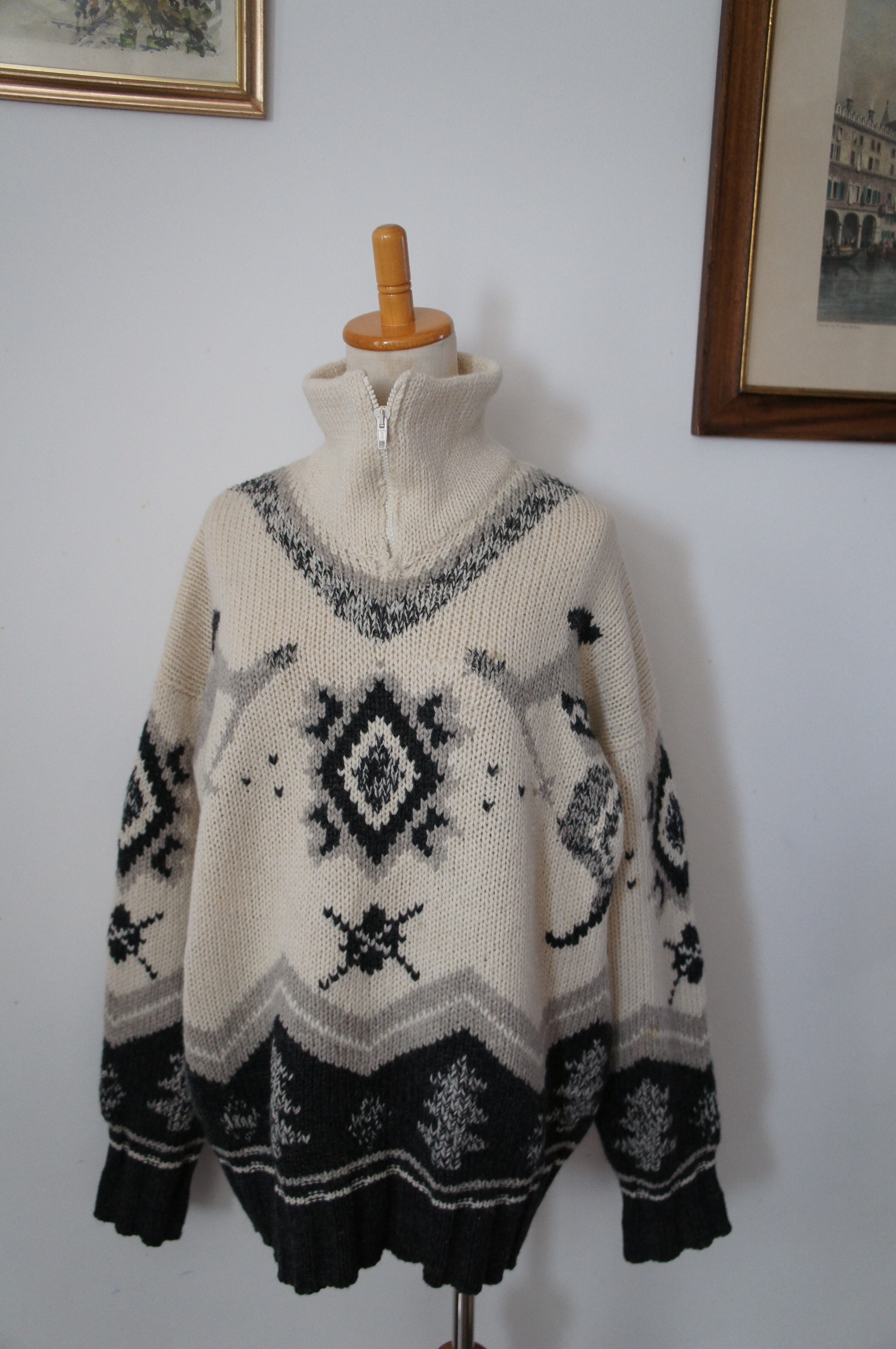 Euro vintage Ski Pattern Shetland Wool Half Zip Knit